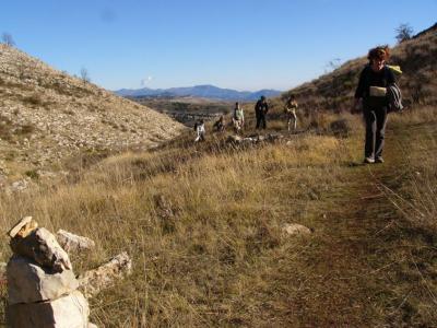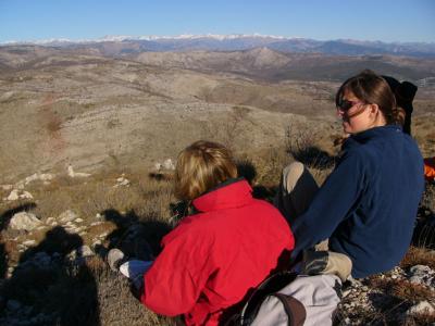 Après une montée aussi longue que périlleuse où nous évitions à la fois des sentiers trompeurs et des Vététistes descendeurs, nous atteignions enfin notre but avec une belle récompense: un panorama 360° avec, au nord, le Mercantour enneigé et, au Sud, la Corse derrière un rideau de brume. Splendide... et mérité, après tant d'épreuves réussies grâce à nos nouveaux amis: la carte IGN et la boussole.