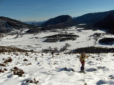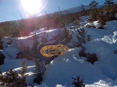 en gros c'est un concours de figure entre les buis, on ne passe plus dessus, mais dedans, et la tête en bas, comme le montre ce jolie cliché de françoise qui essai de marcher avec les raquettes sur la tête...