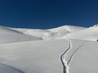 au loin nous apercevons du monde, des traces , nous ne sommes pas seul sur cette planète de neige,