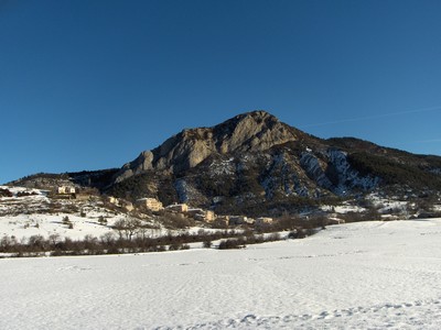 nous nous éloignons du village de soleihas en marchant dans une neige carton,