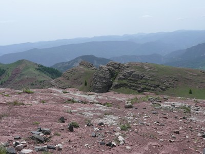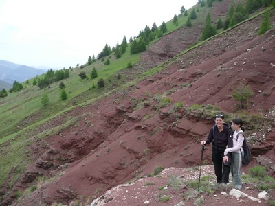 Les paysages sont magnifiques, les près très verts, les mélèzes aussi, les roches très friables sont d'un rouge marron qui font penser à des copeaux de chocolat (hummmmm, dixit Camille). Quelques montagnes nous font penser à la Réunion (que nous ne connaissons qu'en photos;-)))), beaucoup de fleurs.