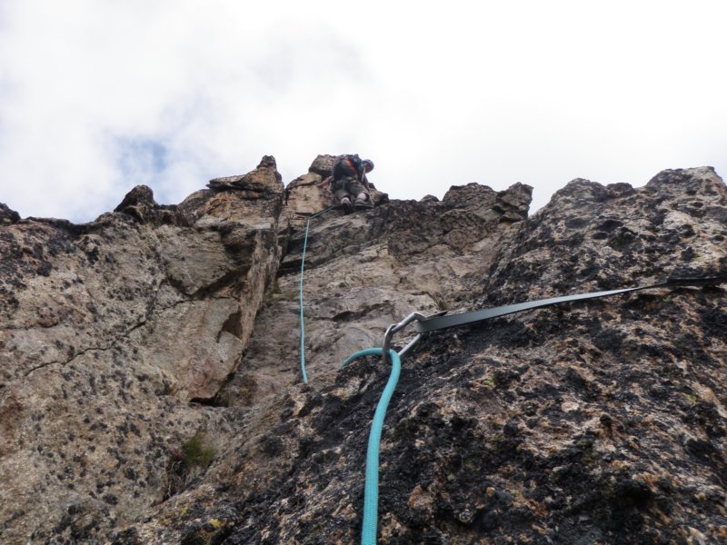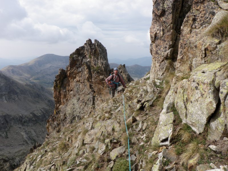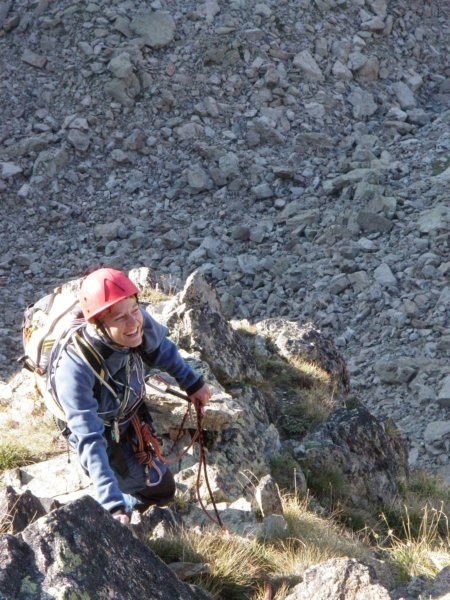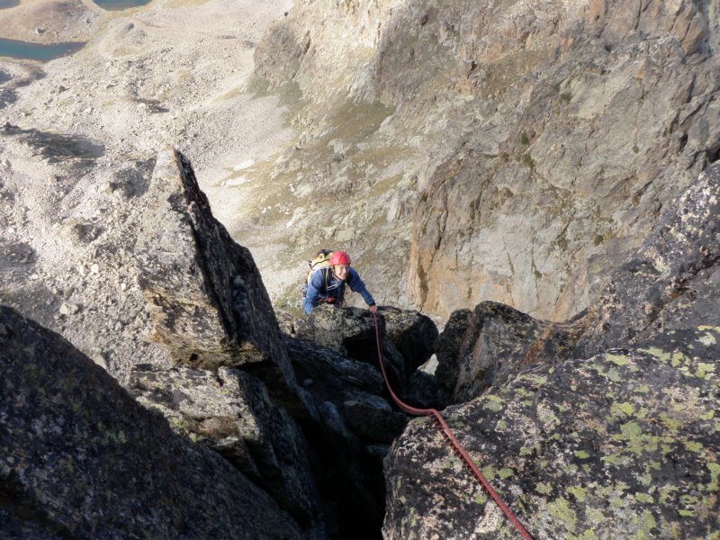 Il dedaigne souvent les dalles, gibier pas assez noble à son gout (il est vrai qu'on rencontre souvent des dalles d'élevages,le spit brilliant et bien nourris au milieu). En tout cas c'est une journée de chasse bien remplie. Apres 4-5 longueurs l'arête se couche