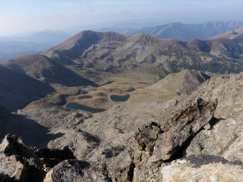 et on peux enclencher la 6eme ce qui nous permet d'arriver dans les temps du topo (~4-5h) vers 12h30 au sommet. 15mn plus tard il se met à pleuvoir et nous redescendons sous l'orage à la Madone. Une voie qui ne laisse pas un souvenir impérissable d'un point de vue grimpe, mais qui dégage un petit parfum d'aventure et donne l'impression d'une ouverture. ------------------------------------------------------------------------------------------------------------------------------------ Dimanche avec Mag on projette l'enchainement Eperon Sud de la Pointe André suivis de l'arête W du Neiglier.6h30 au parking: N'geuuuu ?! la meteo annoncait un ciel tres clair le matin et sans vent. De gros nuages debordent du Pas W de Fenestre et une méchante Lombarde nous glace les os.D'énervement Mag a déja rongé 2 degaines, du coup pour sauver le reste du matos on décide de monter aux lacs de Prals pour se calmer. 45mn plus tard on arrive au collet qui surplombe les lacs.Ca ne s'améliore pas, l'Agneliere est maintenant prise dans les nuages. Comme le vent n'est pas assez froid Mag vide une partie de son camel bag sur sa polaire.On fait 15mn de pause à l'abri avant de prendre une décision. On est incapable d'en prendre une alors on continue au pied de la voie. Versant sud il fait beau on ne voit plus les nuages et on est à l'abri du vent; au dessus le ciel est magnifiquement bleu meme si de temps en temps des écharpes de brume s'étirent au sortir de la baisse de la pointe André. Le soleil qui sort nous pousse à l'action: c'est parti ! Un peu froid aux mains sur les 20 premier metres ensuite les longueurs s'enchainent sans soucis sur un magnifique rocher sain et tres prisu.