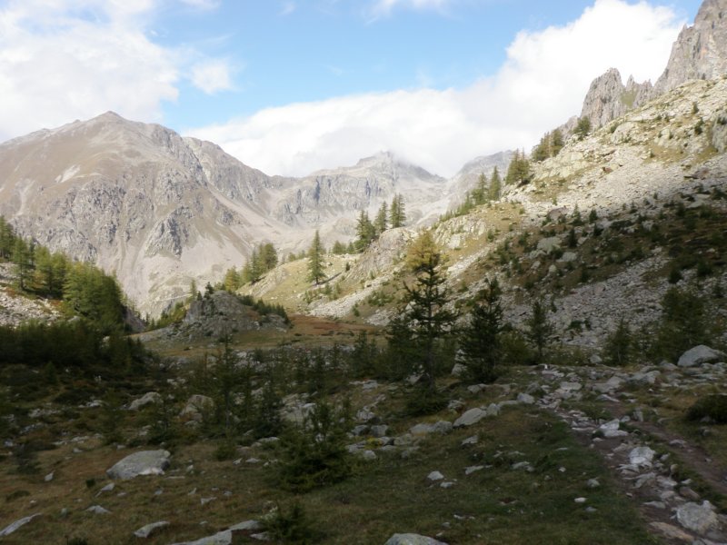 La frontière ainsi que le Boréon sont pris sous des masses imposantes de nuages blancs. Petite pensée pour Christian et sa victime qui doivent être au cayre des Erps.
