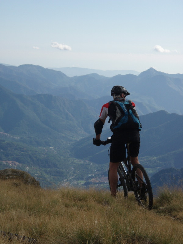 Puis descente face a la Vesubie sur des pentes herbeuses, caillouteuses, et racinaires.....