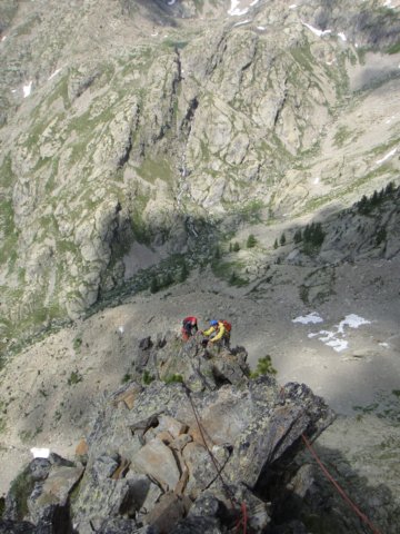 Plus de 3 heures apres avoir démarré nous voila parti dans l'arête NW. on pensait tout faire en corde tendue mais ce ne sera pas le cas.