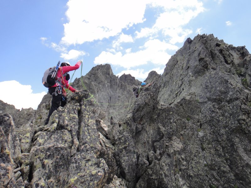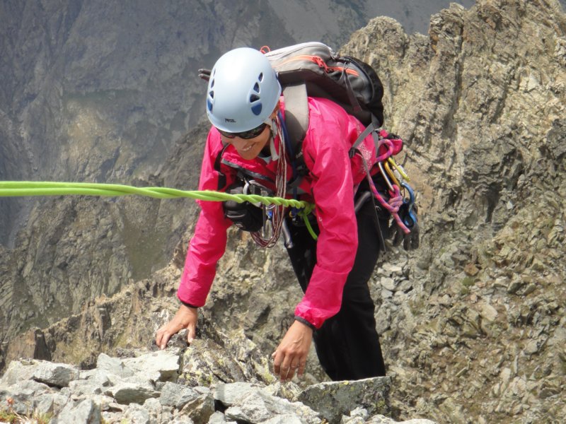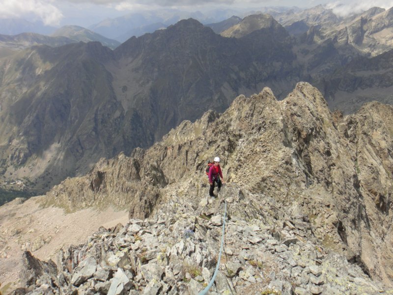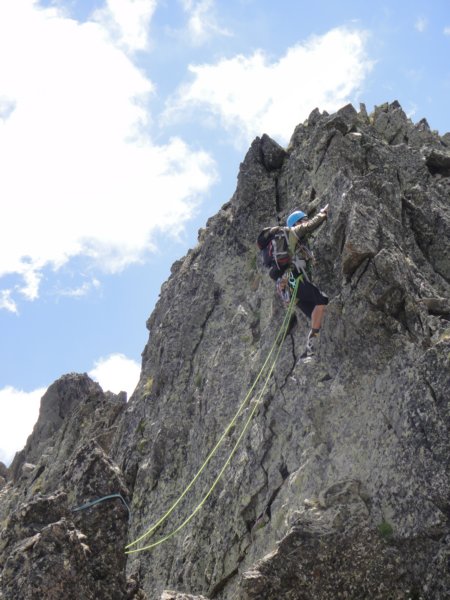 Juste sous la pointe Vernet l'arête devient débonnaire. Contrairement à ce que laisse penser la photo le rocher est globalement bon même s'il faut tester les prises.