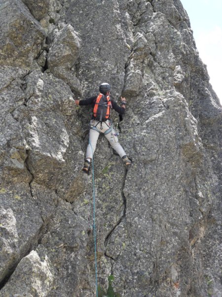 Bon on repart vite pour ne pas se laisser le temps de cogiter. La petite face qui mène à la cime Muffié s'avère finalement assez facile (III/IV) mais justifie quand même du coup la cotation de la course.